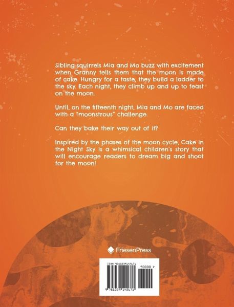 Sibling squirrels Mia and Mo buzz with excitement when Granny tells them that the moon is made of cake. Hungry for a taste, they build a ladder to the sky. Each night, they climb up and up to feast on the moon. Until, on the fifteenth night, Mia and Mo are faced with a "moonstrous" challenge. Can they bake their way out of it? Inspired by the phases of the moon cycle, Cake in the Night Sky is a whimsical children's story that will encourage readers to dream big and shoot for the moon!