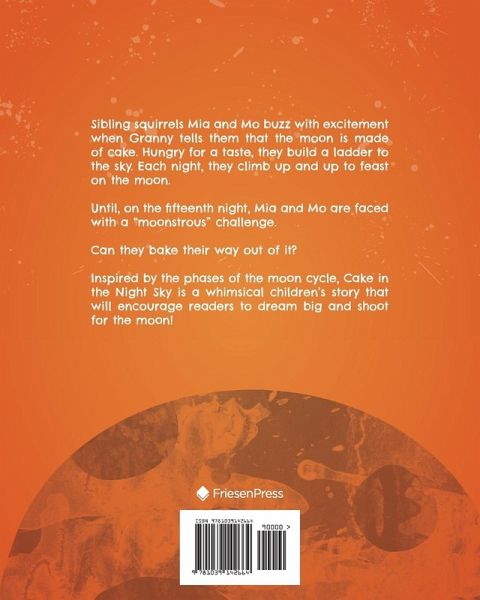 Sibling squirrels Mia and Mo buzz with excitement when Granny tells them that the moon is made of cake. Hungry for a taste, they build a ladder to the sky. Each night, they climb up and up to feast on the moon. Until, on the fifteenth night, Mia and Mo are faced with a "moonstrous" challenge. Can they bake their way out of it? Inspired by the phases of the moon cycle, Cake in the Night Sky is a whimsical children's story that will encourage readers to dream big and shoot for the moon!