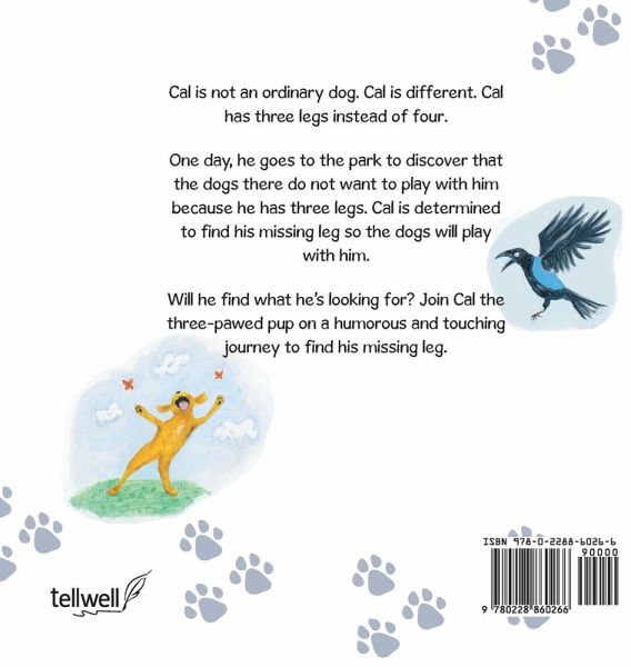 Cal is not an ordinary dog. Cal is different. Cal has three legs instead of four. One day, he goes to the park to discover that the dogs there do not want to play with him because he has three legs. Cal is determined to find his missing leg so the dogs will play with him. Will he find what he's looking for? Join Cal the three-pawed pup on a humorous and touching journey to find his missing leg.