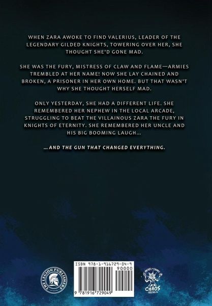 When Zara awoke to find Valerius, leader of the legendary Gilded Knights, towering over her, she thought she'd gone mad. She was the Fury, mistress of claw and flame-armies trembled at her name! Now she lay chained and broken, a prisoner in her own home. But that wasn't why she thought herself mad. Only yesterday, she remembered a different life. She remembered her nephew in the local arcade, struggling to beat the villainous Zara the Fury in Knights of Eternity. She remembered her uncle and his big booming laugh. ...and she remembered the gun that changed everything.