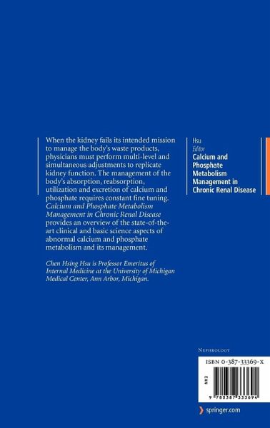 When the kidney fails its intended mission to manage the body's waste products, physicians must perform multi-level and simultaneous adjustments to replicate kidney function. The management of the body's absorption, reabsorption, utilization and excretion of calcium and phosphate requires constant fine tuning. Calcium and Phosphate Metabolism Management in Chronic Renal Diseases provides an overview of the state-of-the-art clinical and basic science aspects of abnormal calcium and phosphate metabolism and its management.