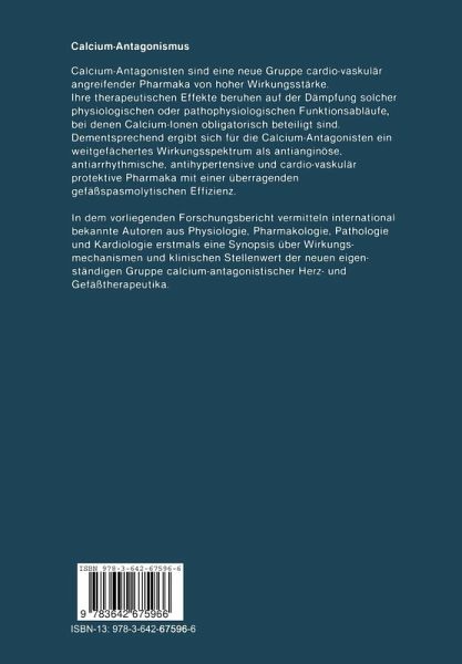 Steuerung der myocardialen Kontraktilität, ATP-Spaltung, Atmungsintensität und Schrittmacher-Funktion durch Calcium-Ionen - Wirkungsmechanismus der Calcium-Antagonisten.- Nachweis einer strengen quantitativen Korrelation zwischen Hemmung des transmembranären Calcium-Influx und der mechanischen Spannungsentwicklung des Myocards unter dem Einfluß verschiedener Calcium-Antagonisten.- The Effects of Calcium-Antagonists on Atrioventricular Conduction.- Effekte antidysrhythmischer Pharmaka auf die Na+- und Ca2+-Permeabilität der Myokardmembran.- The Role of Calcium-Ion Antagonists in Cardiac Arrhythmias.- Differential Responses to Sodium and Calcium Antagonists in Reciprocating Atrioventricular Tachycardia (WPW Syndrome).- Calcium Currents Mediating Inotropic and Chronotropic Effects in Mammalian Cardiac Muscle.- Verapamil Effects in the Setting of Acute Experimental Myocardial Ischemia.- Effects of Calcium-Antagonists on Automaticity and Conduction in Man.- Effects of Altered Calcium Concentrations on AV Conduction and Interactions of Verapamil and Sodium or Calcium.- Calcium-Antagonisten in der Behandlung von supraventrikulären Tachykardien.- Behandlung von Herzrhythmusstörungen und Hypertonien mit Calciumantagonisten.- Cardioprotective Actions of Calcium-Antagonists in Myocardial Anoxia and Ischaemia.- Effect of Verapamil on Energy Consumption and Development of Contracture During the Calcium Paradox.- Prevention of Myocardial Degeneration in Hamsters with Hereditary Cardiomyopathy.- Kardioprotektion durch Kalziumantagonisten bei erblich kardiomyopathischen Hamstern.- Klinische Ergebnisse der calciumantagonistischen Therapie bei Patienten mit hypertroph obstruktiver Kardiomyopathie.- Protection of the Globally Ischemic Heart with Calcium Antagonists: ImprovedRecovery After Cardiopulmonary Bypass.- Calcium-Antagonismus, ein Grundprinzip der Vasodilatation.- Response of Large and Small Coronary Arteries to Adenosine, Nitroglycerin, Cardiac Glycosides and Calcium Antagonists.- Blockade of Renal Autoregulatory Vasoconstriction by Calcium Antagonists.- Aufhebung Herzglycosid-Induzierter Spasmen der Mesenterialgefäße durch Calcium-Antagonisten im Hundexperiment.- Application of Calcium Antagonists in Patients with Vasospastic Angina Pectoris.- Application of Calcium Antagonists in Patients with Prinzmetal Angina Pectoris.- Einfluß der Calcium-Antagonisten Verapamil, Nifedipin und Fendilin auf Blutdruck und Herzfrequenz.- Verhütung experimenteller Gefäßverkalkungen (Mönckebergs Typ der Arteriosklerose) durch Calcium-Antagonisten bei Ratten.- Therapeutische Wirkung von Calcium-Antagonisten auf den globalen myokardialen Blutfluß.- The Effect of the Calcium-Antagonistic Drug Nifedipine on Coronary and Left Ventricular Dynamics in Patients with Coronary Heart Disease.- Regional Wall Motion Following Intra-Bypass Injection of Nifedipine: Design of a Protocol and Initial Experience.- Der kalziumantagonistische Effekt auf die zentrale und periphere Haemodynamik, Ventrikelvolumina und die regionale Wandbewegung bei koronarer Herzkrankheit.- Hämodynamik und Kontraktilitätsreserve des linken Ventrikels während körperlicher Belastung bei Gesunden nach oraler Einnahme von Fendilin.- Der Einfluß von Fendilin als Monotherapie und in Kombination mit einem Beta-Rezeptorenblocker auf die Belastungshämodynamik Koronarkranker.- Hämodynamik während belastungsinduzierter Angina pectoris nach einmaliger Gabe von Fendilin und Nifedipin. - Ist die Nitroglycerinwirkung noch nachweisbar?.- Dosiswirkungsrelation von Kalzium-Antagonistenund Isosorbiddinitrat bei Patienten mit stabiler Angina pectoris.- Effekt von Fendilin auf Belastungs-EKG und Belastungshämodynamik bei Koronarkranken.- Change in Exercise Tolerance in Patients with Angina Pectoris Induced by Administration of a Calcium-Blocker, Nifedipine (Adalat), Alone or in Combination with Beta-Blockers.- Der Stellenwert der Calcium-Antagonisten in der Angina pectoris Therapie.