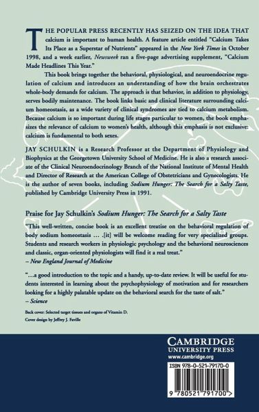This book brings together the behavioral, physiological, and neuroendocrine regulation of calcium. An understanding of how the brain orchestrates whole-body demands for calcium is introduced. The approach is one in which behavior in addition to physiology serves bodily maintenance. The book links basic and clinical literature surrounding calcium homeostasis, as a wide variety of clinical syndromes are tied to calcium metabolism. Because calcium is so important during life stages particular to women, an emphasis is placed on the relevance of calcium to women's health throughout the book, though not exclusively since calcium is fundamental to both sexes.