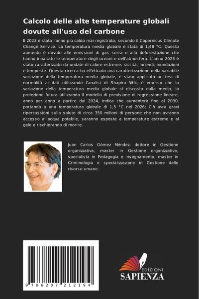 Il 2023 è stato l'anno più caldo mai registrato, secondo il Copernicus Climate Change Service. La temperatura media globale è stata di 1,48 °C. Questo aumento è dovuto alle emissioni di gas serra e alla deforestazione che hanno innalzato le temperature degli oceani e dell'atmosfera. L'anno 2023 è stato caratterizzato da ondate di calore estreme, siccità, incendi, inondazioni e tempeste. Questa ricerca ha effettuato una caratterizzazione della variabile variazione della temperatura media globale, è stato applicato un test di normalità ai dati utilizzando l'analisi di Shapiro Wilk, è emerso che la variazione della temperatura media globale si discosta dalla media, la proiezione futura utilizzando il modello di previsione di regressione lineare, anno per anno a partire dal 2024, indica che aumenterà fino al 2030, portando a una temperatura globale di 1,5 °C nel 2026; Ciò avrà gravi ripercussioni sulla salute di circa 350 milioni di persone che non avranno accesso all'acqua potabile, saranno esposte a temperature estreme e al gelo e rischieranno di morire.