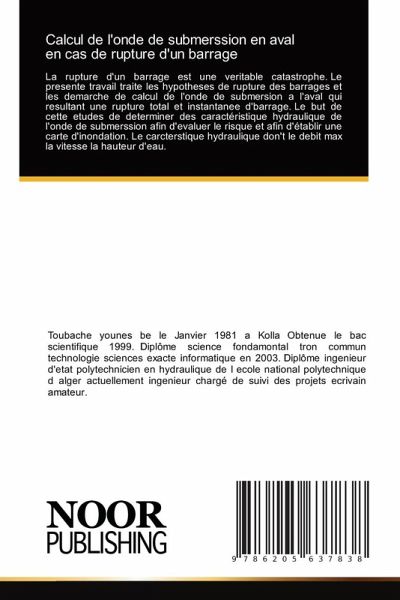La rupture d'un barrage est une veritable catastrophe. Le presente travail traite les hypotheses de rupture des barrages et les demarche de calcul de l'onde de submersion a l'aval qui resultant une rupture total et instantanee d'barrage. Le but de cette etudes de determiner des caractéristique hydraulique de l'onde de submerssion afin d'evaluer le risque et afin d'établir une carte d'inondation. Le carcterstique hydraulique don't le debit max la vitesse la hauteur d'eau.
