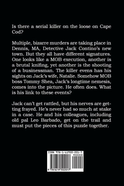 Is there a serial killer on the loose on Cape Cod? Multiple, bizarre murders are taking place in Dennis, MA, Detective Jack Contino's new town. But they all have different signatures. One looks like a MOB execution, another is a brutal knifing, yet another is the shooting of a businessman. The killer evens has his sights on Jack's wife, Natalie. Somehow MOB boss Tommy Shea, Jack's longtime nemesis, comes into the picture. He often does. What is his link to these events? Jack can't get rattled, but his nerves are getting frayed. He's never had so much at stake in a case. He and his colleagues, including old pal Leo Barbado, get on the trail and must put the pieces of this puzzle together.