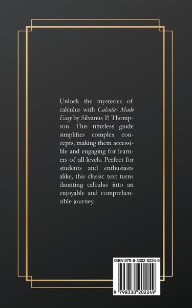 Unlock the mysteries of calculus with Calculus Made Easy by Silvanus P. Thompson. This timeless guide simplifies complex concepts, making them accessible and engaging for learners of all levels. Perfect for students and enthusiasts alike, this classic text turns daunting calculus into an enjoyable and comprehensible journey.
