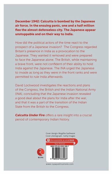 December 1942: Calcutta is bombed by the Japanese air force. In the ensuing panic, one and a half million flee the almost defenseless city. The Japanese appear unstoppable and on their way to India. How did the political actors of the time react to the prospect of a Japanese invasion? The Congress regarded Britains presence in India as a provocation to the Japanese. They wanted it removed and were prepared to face the Japanese alone. The British, while maintaining a brave front, were not confident of their ability to hold India against the Japanese. The INA urged the Japanese to invade as long as they were in the front ranks and were permitted to rule India afterwards. David Lockwood investigates the reactions and plans of the Congress, the British and the Indian National Army (INA), concluding that the Japanese invasion revealed a good deal about the plans for India after the war, and that it was a part of the transition of the Indian State from the British to the Congress. Calcutta Under Fire offers a rare insight into a crucial period of contemporary Indian history.