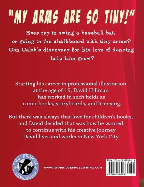My arms are so tiny!!! "Ever try to swing a baseball bat or go to the chalkboard with tiny arms? " But Caleb discovers he can dance! Can Caleb's love for dancing help him grow?