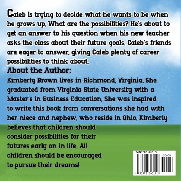 Caleb is trying to decide what he wants to be when he grows up. What are the possibilities? He's about to get an answer to his question when his new teacher asks the class about their future goals. Caleb's friends are eager to answer, giving Caleb plenty of career possibilities to think about.