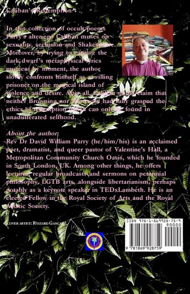 In this collection of surrealist prose-poetry and Dada versicles, Parry's alter-ego Caliban muses on queer sexuality and existential seclusion from the perspective of Shakespearean Noir. Moreover, by trying to capture the dark and twisted dwarf's metaphysical lyrics moment by moment, the author slowly deconstructs himself as a willing prisoner on the magical island of violence and desire. After all, Caliban would claim that neither Browning nor Nietzsche had fully grasped the ethics of redemption, pure transcendence, or romantic passion, which can only be found in an unadulterated selfhood. 'One of the few, if not only, works of Gnostic Fantasy in modern times. An "edge" literary movement, re-evaluating received perspectives on classical works and discovering "gnosis", in the sense of a Knowledge of our human hearts. Beautiful, invigorating and strikingly lucid. Its images need weeks to fully unpack, while its disturbing implications haunt a reader's unsettled moods' - Daniele-Hadi Irandost FRSA, founder and curator of TEDxLambeth 'It is a descent into an underworld and a return as a sweat and semen stained, dirty, ugly, angry and very empowered God' - Charlotte Rogers, award-winning author of P is for Prostitution 'Parry is particularly adept at descriptions of the tenebrous side of life. He paints numerous pictures of darkness and evil in a very persuasive manner' - Dr Bernard Hoose, former lecturer of Moral Theology at Heythrop College, University of London 'Parry's poetry traverses inner worlds reminiscent of those of Lautréamont, Bataille and the demonologist Collin De Plancy' - Richard Rudgley, author and Channel 4 television presenter