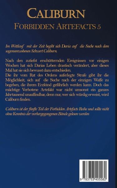 Im Wettlauf mit der Zeit begibt sich Daria auf die Suche nach dem sagenumwobenen Schwert Caliburn.Nach den zutiefst erschütternden Ereignissen vor einigen Wochen hat sich Darias Leben drastisch verändert, aber dieses Mal hat sie sich bewusst dazu entschieden.Die ihr vom Rat des Ordens auferlegte Strafe gibt ihr die Möglichkeit, sich auf die Suche nach der einzigen Waffe zu begeben, die ihrem Erzfeind gefährlich werden kann. Doch das mächtige Verbotene Artefakt war nicht umsonst ein ganzes Jahrtausend unauffindbar, denn nur, wer sich würdig erweist, wird Caliburn finden.Caliburn ist der fünfte Teil der Forbidden Artefacts Reihe und sollte nicht ohne Kenntnis der vorhergegangenen Bände gelesen werden.