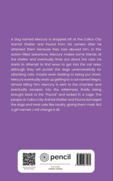 A dog named Mercury is dropped off at the Calico City Animal Shelter and Pound from his owners after he attacked them because they had abused him. In this action-filled adventure, Mercury makes some friends at the shelter and eventually finds out about the cats. He starts to attempt to find ways to get into the cat area, although they will punish the dogs unremorsefully for attacking cats, maybe even leading to being put down. Mercury eventually ends up getting to a cat named Negro, almost killing him. Mercury is sent to the chamber and eventually escapes into the wilderness, finally being brought back to the "Pound" and locked in a cage. The people at Calico City Animal Shelter and Pound damaged the dogs and treat cats like royalty, giving them most. But a girl named J will change it all.