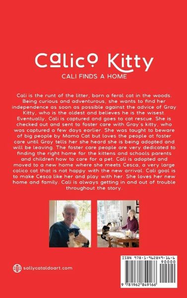 Cali is the runt of the litter, born a feral cat in the woods. Being curious and adventurous, she wants to find her independence as soon as possible against the advice of Gray Kitty, who is the oldest and believes he is the wisest. Eventually, Cali is captured and goes to cat rescue. She is checked out and sent to foster care with Gray's kitty, who was captured a few days earlier. She was taught to beware of big people by Mama Cat but loves the people at foster care until Gray tells her she heard she is being adopted and will be leaving. The foster care people are very dedicated to finding the right home for the kittens and schools parents and children how to care for a pet. Cali is adopted and moved to a new home where she meets Cesca, a very large calico cat that is not happy with the new arrival. Cali goal is to make Cesca like her and play with her. She loves her new home and family. Cali is always getting in and out of trouble throughout the story.