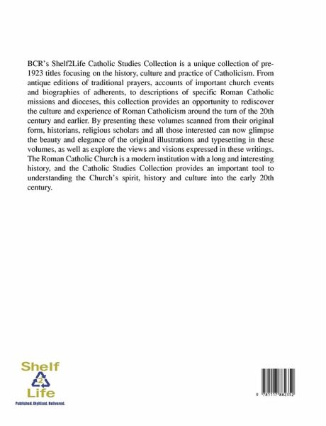 The Shelf2Life Catholic Studies Collection is a unique collection of pre-1923 titles focusing on the history, culture and practice of Catholicism. From antique editions of traditional prayers, accounts of important church events and biographies of adherents, to descriptions of specific Roman Catholic missions and dioceses, this collection provides an opportunity to rediscover the culture and experience of Roman Catholicism around the turn of the 20th century and earlier. By presenting these volumes scanned from their original form, historians, religious scholars and all those interested can now glimpse the beauty and elegance of the original illustrations and typesetting in these volumes, as well as explore the views and visions expressed in these writings. The Roman Catholic Church is a modern institution with a long and interesting history, and the Catholic Studies Collection provides an important tool to understanding the Church's spirit, history and culture into the early 20th century.