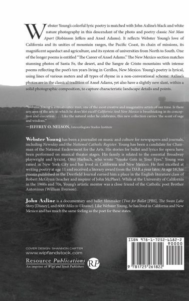 Webster Young's colorful lyric poetry is matched with John Axline's black and white nature photography in this descendant of the photo and poetry classic Not Man Apart (Robinson Jeffers and Ansel Adams). It reflects Webster Young's love of California and its unities of mountain ranges, the Pacific Coast, its chain of missions, its magnificent aqueduct and agriculture, and its system of universities from North to South. One of the longer poems is entitled ""The Career of Ansel Adams."" The New Mexico section matches stunning photos of Santa Fe, the desert, and the Sangre de Cristo mountains with intense poems reflecting the poet's ten years living in Cerillos, New Mexico. Young's poetry is lyrical, using lines of various meters and all types of rhyme in a non-conventional scheme. Axline's photos are in the classical tradition of Ansel Adams, yet also have a slightly new slant, within a solid photographic composition, to capture characteristic landscape details and points.