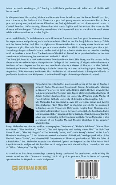 Memo arrives in Washington, D.C. hoping to fulfill the hopes he has held in his heart all his life. Will he succeed? In the years here his cousins, Violeta, and Marcelo, have found success. He hopes he will too. But, much too soon, he finds out that Violeta is a practical young woman who expects him to be a practical young man, not a dreamer. If he does not find a job, he will run out of money and return to Central America. Unfortunately, Memo does not speak English, and this makes him soon see his dreams will not happen. This reality overwhelms the 19-year-old. And so, the chase for work starts while at the same time he studies English. A successful Radio, TV and theater actor in El Salvador for more than four years he now must lower his expectations and grab any job in order to subsist. Like it or not his first job is as a busboy. This is not the dream he had had. This is a nightmare. Marcelo takes him to a party where he dances and impresses a girl. She tells him to go to a dance studio. She thinks they would give him a job. Surprisingly he gets offered a dance teacher and his job as a dancer starts. And so does his traveling until he receives a letter from The President of the United States! As he promised when he became a resident of this country, he must serve in the U. S. ARMY. The Army job leads to a part in the famous American Music West Side Story, and his success in the show leads to a scholarship at George Mason College of the University of Virginia where he earns a Bachelor of Arts degree, and his success here leads him to a Master of Fine Arts at the Catholic University of America. While studying at Catholic University he is sent on touring trips to Peru, Brazil, Argentina, Chile, Germany, and Puerto Rico. At the end of this novel Memo is flying to California to perform in San Francisco. Hollywood is where he will begin his movie professional career!