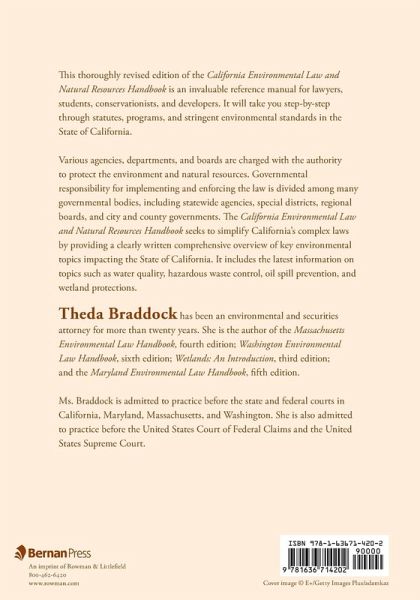 This thoroughly revised edition of the California Environmental Law and Natural Resources Handbook is an invaluable reference manual for lawyers, students, conservationists, and developers. It will take you step-by-step through statutes, programs, and stringent environmental standards in the State of California. Various agencies, departments, and boards are charged with the authority to protect the environment and natural resources. Governmental responsibility for implementing and enforcing the law is divided among many governmental bodies, including statewide agencies, special districts, regional boards, and city and county governments. The California Environmental Law and Natural Resource Handbook seeks to simplify California’s complex laws by providing a clearly written comprehensive overview of key environmental topics impacting the State of California. It includes the latest information on topics such as water quality, hazardous waste control, oil spill prevention, and wetland protections.