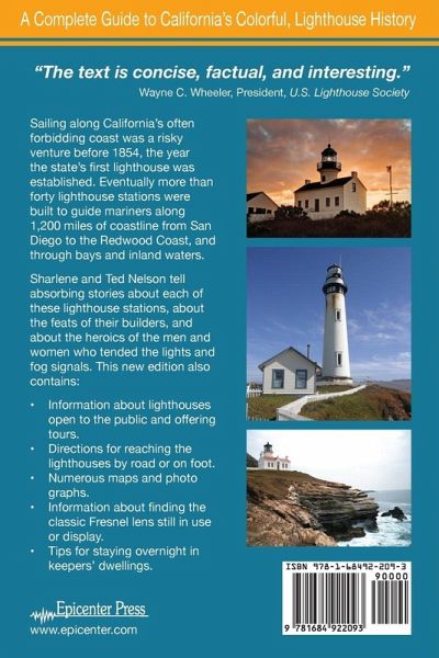 Sailing along California's often forbidding coast was a risky venture before 1854, the year the state's first lighthouse was established. Eventually more than forty lighthouse stations were built to guide mariners along 1,200 miles of coastline from San Diego to the Redwood Coast, and through bays and inland waters. Sharlene and Ted Nelson tell absorbing stories about each of these lighthouse stations, about the feats of their builders, and about the heroics of the men and women who tended the lights and fog signals. This new edition also contains: ¿ Information about lighthouses open to the public and offering tours. ¿ Directions for reaching the lighthouses by road or on foot. ¿ Numerous maps and photo graphs. ¿ Information about finding the classic Fresnel lens still in use or display. ¿ Tips for staying overnight in keepers' dwellings.