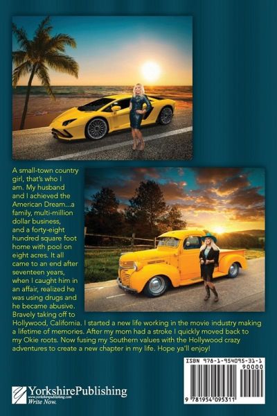 A small-town country girl, that's who I am. My husband and I achieved the American Dream...a family, multi-million dollar business, and a forty-eight hundred square foot home with pool on eight acres. It all came to an end after seventeen years, when I caught him in an affair, realized he was using drugs and he became abusive. Bravely taking off to Hollywood, California. I started a new life working in the movie industry making a lifetime of memories. After my mom had a stroke I quickly moved back to my Okie roots. Now fusing my Southern values with the Hollywood crazy adventures to create a new chapter in my life. Hope y'all enjoy!