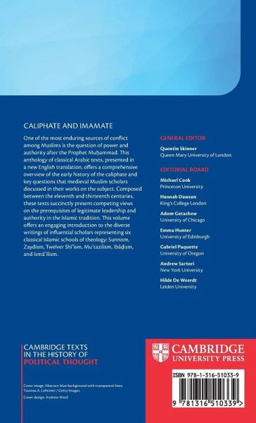 "One of the most enduring sources of conflict among Muslims is the question of power and authority after the Prophet Muòhammad. This anthology of classical Arabic texts, presented in a new English translation, offers a comprehensive overview of the early history of the caliphate and medieval Muslim scholarly discussions on the subject. Composed between the eleventh and thirteenth centuries, these texts succinctly present competing views on the prerequisites of legitimate leadership and authority in the Islamic tradition"--