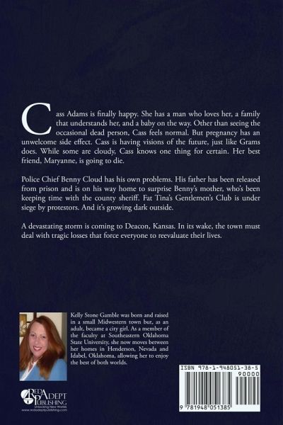 Cass Adams is finally happy. She has a man who loves her, a family that understands her, and a baby on the way. Other than seeing the occasional dead person, Cass feels normal. But pregnancy has an unwelcome side effect. Cass is having visions of the future, just like Grams does. While some are cloudy, Cass knows one thing for certain. Her best friend, Maryanne, is going to die. Police Chief Benny Cloud has his own problems. His father has been released from prison and is on his way home to surprise Benny's mother, who's been keeping time with the county sheriff. Fat Tina's Gentlemen's Club is under siege by protestors. And it's growing dark outside. A devastating storm is coming to Deacon, Kansas. In its wake, the town must deal with tragic losses that force everyone to reevaluate their lives.