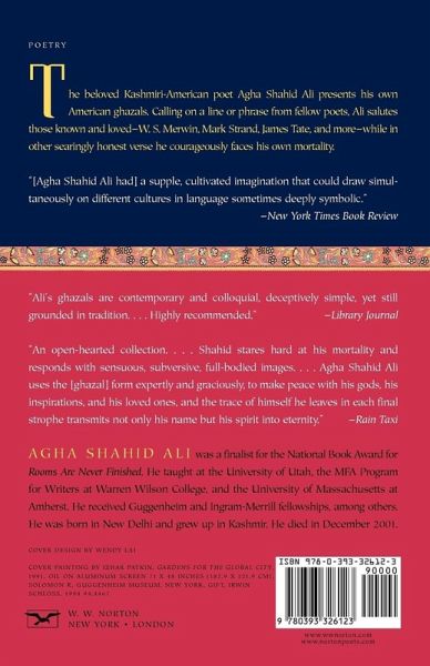 The beloved Kashmiri-American poet Agha Shahid Ali presents his own American ghazals. Calling on a line or phrase from fellow poets, Ali salutes those known and loved-W. S. Merwin, Mark Strand, James Tate, and more-while in other searingly honest verse he courageously faces his own mortality.