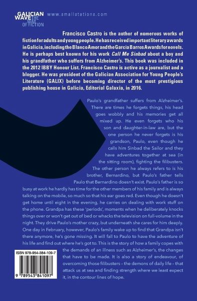 Paulo’s grandfather suffers from Alzheimer’s. There are times he forgets things, his head goes wobbly and his memories get all mixed up. He even forgets who his son and daughter-in-law are, but the one person he never forgets is his grandson, Paulo, even though he calls him Sinbad the Sailor and they have adventures together at sea (in the sitting room), fighting the filibusters. The other person he always refers to is his brother, Bernardino, but Paulo’s father tells Paulo that Bernardino doesn’t exist. Paulo’s father is so busy at work he hardly has time for the other members of his family and is always talking on the mobile, so much so that his ear goes red. Even though he doesn’t get home until eight in the evening, he carries on dealing with work stuff on the phone. Grandpa has these ‘periods’, moments when he deliberately knocks things over or won’t get out of bed or whacks the television on full-volume in the night. They drive Paulo’s mother crazy, but underneath she cares for him deeply. One day in February, however, Paulo’s family wake up to find that Grandpa isn’t there anymore, he’s gone missing. It will fall to Paulo to have the adventure of his life and find out where he’s got to. This is the story of how a family copes with the demands of an illness such as Alzheimer’s, the changes that have to be made. It is also a story of endeavour, of overcoming those filibusters – the demons of daily life – that attack us at sea and finding strength where we least expect it, in the contour lines of hope. Francisco Castro is the author of numerous works of fiction for adults and young people. He has received important literary awards in Galicia, including the Blanco Amor and the García Barros Awards for novels. He is perhaps best known for his work Call Me Sinbad about a boy and his grandfather who suffers from Alzheimer’s. This book was included in the 2012 IBBY Honour List. Francisco Castro is active as a journalist and a blogger. He was president of the Galician Association for Young People’s Literature (GALIX) before becoming director of the most prestigious publishing house in Galicia, Editorial Galaxia, in 2016.