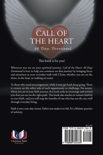 This book is for you! Wherever you are on your spiritual journey, Call of the Heart: 40 Days Devotional is here to help you continue on that journey by bringing focus and awareness to your everyday walk with Christ, whether you are on the shore, in the boat, or walking on water. To those who need encouragement, while it may get hard, keep going. There is victory on the other side of each opportunity or challenge. No matter where you are in your faith journey, this book seeks to encourage and remind you that you are on the right path. This book also teaches to remain faithful to your faith, and you will reap the benefits of one who has run the race well through everyday living. Faith is not a one-day tryout. Either you make it or fail. It's a lifetime practice of sobriety.