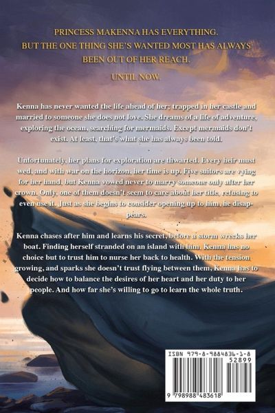 Genderbent Little Mermaid retelling meets Brave in this debut NA Fantasy Romance about a fat human princess who dreams of a life of adventure on the ocean. Perfect for fans of Kerri Maniscalco and Legends & Lattes. Kenna has never wanted the life ahead of her; trapped in her castle and married to someone she does not love. She dreams of a life of adventure, exploring the ocean, searching for mermaids. Except mermaids don't exist. At least, that's what she has always been told. Unfortunately, her plans for exploration are thwarted. Every heir must wed, and with war on the horizon, her time is up. Five suitors are vying for her hand, but Kenna vowed never to marry someone only after her crown. Only, one of them doesn't seem to care about her title, refusing to even use it. Just as she begins to consider opening up to him, he disappears. Kenna chases after him and learns his secret, before a storm wrecks her boat. Finding herself stranded on an island with him, Kenna has no choice but to trust him to nurse her back to health. With the tension growing, and sparks she doesn't trust flying between them, Kenna has to decide how to balance the desires of her heart and her duty to her people. And how far she's willing to go to learn the whole truth.