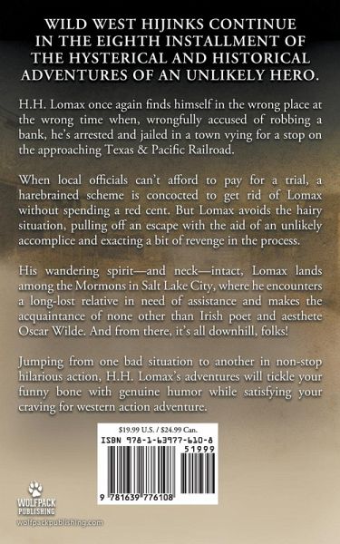 "The wild west hijinx continue in the eighth installment of the hysterical historical adventures of the unlikely hero, H.H. Lomax! H.H. Lomax once again finds himself in the wrong place at the wrong time when, wrongfully accused of robbing a bank, he's arrested and jailed in a town vying for a stop on the approaching Texas & Pacific Railroad. When local officials work out they can't afford to pay for a trial, a scheme is concocted to get rid of Lomax without spending a red cent. Lomax avoids a hairy situation, pulling off an escape with the aid of an unlikely accomplice, but not before deciding to exact a bit of revenge... His wandering spirit-and neck-intact, Lomax next lands among the Mormons in Salt Lake City, where he encounters a long-lost relative in need of assistance and makes the acquaintance of none other than Irish poet and aesthete Oscar Wilde. And from there, it's all downhill, folks! Jumping from one bad situation to another in non-stop hilarious action, H.H. Lomax's adventures will tickle your funny bone with genuine humor while satisfying your craving for wild west action and adventure"--