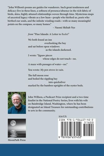 "John Willson’s poems are guides for wanderers. Such great tenderness and delicacy live in these lines, a softness of presence/absence in the rich fabric of birds, skies, highly attuned relationships woven through time. Mysterious maps of ancestral legacy vibrate as a low hum—people who birthed us, poets who birthed our souls, and the infinite winding roads—with so many meaningful points on the compass, so many homes." ~ Naomi Shihab Nye