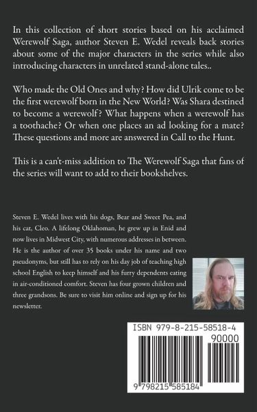 In this collection of short stories based on his acclaimed Werewolf Saga, author Steven E. Wedel reveals back stories about some of the major characters in the series while also introducing characters in unrelated stand-alone tales.. Who made the Old Ones and why? How did Ulrik come to be the first werewolf born in the New World? Was Shara destined to become a werewolf? What happens when a werewolf has a toothache? Or when one places an ad looking for a mate? These questions and more are answered in Call to the Hunt. This is a can't-miss addition to The Werewolf Saga that fans of the series will want to add to their bookshelves.