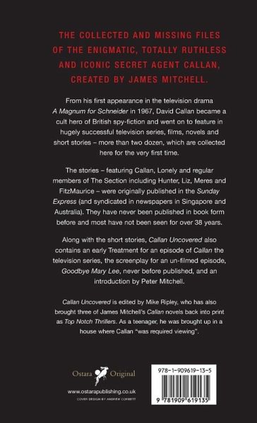 A 'must read' for all fans of the iconic television series Callan. The first-ever compilation of the Callan short stories written by creator James Mitchell between 1967 and 1976, never published in book form before. Callan Uncovered also includes a Mitchell Outline Treatment for a Callan episode and a previously unseen full-length script - Goodbye Mary Lee - which was never filmed. Edited by Mike Ripley, with a special introduction by James Mitchell's son and literary executor, Peter.