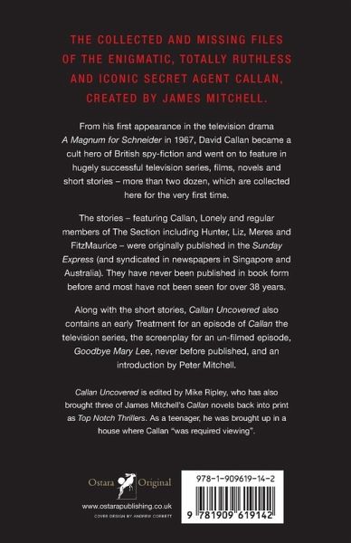 A 'must read' for all fans of the iconic television series Callan. The first-ever compilation of the Callan short stories written by creator James Mitchell between 1967 and 1976, never published in book form before. Callan Uncovered also includes a Mitchell Outline Treatment for a Callan episode and a previously unseen full-length script - Goodbye Mary Lee - which was never filmed. Edited by Mike Ripley, with a special introduction by James Mitchell's son and literary executor, Peter.