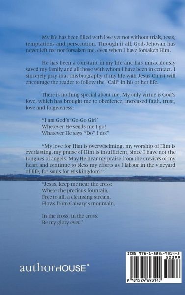 My life has been filled with love yet not without trials, tests, temptations and persecution. Through it all, God-Jehovah has never left me nor forsaken me, even when I have forsaken Him. He has been a constant in my life and has miraculously saved my family and all those with whom I have been in contact. I sincerely pray that this biography of my life with Jesus Christ will encourage the reader to follow the "Call" in his or her life. There is nothing special about me. My only virtue is God’s love, which has brought me to obedience, increased faith, trust, love and forgiveness. "I am God’s ‘Go-Go Girl’ Wherever He sends me I go! Whatever He says "Do" I do!" "My love for Him is overwhelming, my worship of Him is everlasting, my praise of Him is insufficient, since I have not the tongues of angels. May He hear my praise from the crevices of my heart and continue to bless my efforts as I labour in the vineyard of life, for souls for His kingdom." "Jesus, keep me near the cross; Where the precious fountain, Free to all, a cleansing stream, Flows from Calvary’s mountain. In the cross, in the cross, Be my glory ever."