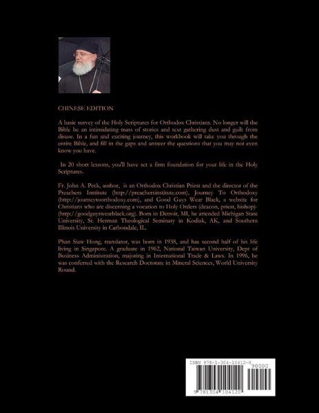 CHINESE EDITION. A basic survey of the Holy Scriptures for Orthodox Christians. No longer will the Bible be an intimidating mass of stories and text gathering dust and guilt from disuse. In a fun and exciting journey, this workbook will take you through the entire Bible, and fill in the gaps and answer the questions that you may not even know you have. In 20 short lessons, you'll have set a firm foundation for your life in the Holy Scriptures. Translated by Dr. Bede Phan Siaw Hong.