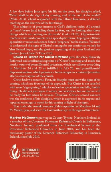 A few days before Jesus gave his life on the cross, his disciples asked, "What shall be the sign of thy coming, and of the end of the world?" (Matt. 24:3). Christ responded with the Olivet Discourse, a detailed teaching on the doctrine of the last things. We need to understand the signs of Christ's coming for our comfort as we look for "that blessed hope, and the glorious appearing of the great God and our Saviour Jesus Christ" (Titus 2:13). Christ had two concerns. First, his disciples must know the signs of his coming, which are footsteps of his approach. But Christ is not satisfied with mere "sign-gazing," which can lead to speculation and idle, foolish living. He did not give signs to satisfy our curiosities, but so that we will be ready for him when he returns. Therefore, Christ's second concern was the readiness of his disciples, which is expressed in his urgent and repeated warnings to watch for his coming in light of the signs. Watch, pray, and serve the Lord with an eye to the signs of his return!