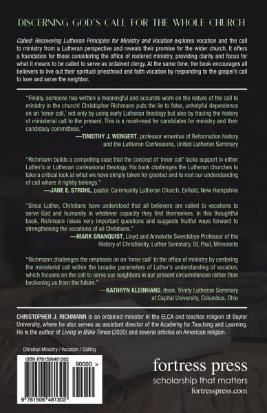 Called: Recovering Lutheran Principles for Ministry and Vocation traces Lutherans' views on ministerial call and constructively reorients the call to Luther's doctrine of vocation. The book provides insights to those considering the office of ministry and encourages all believers to live their spiritual priesthood in response to neighbors' needs.