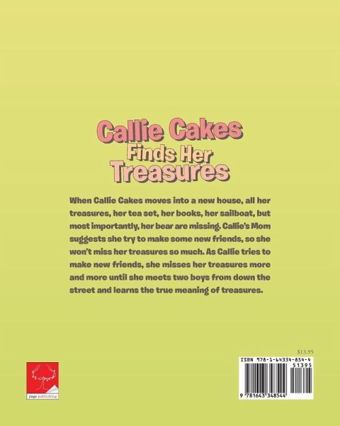 When Callie Cakes moves into a new house, all her treasures, her tea set, her books, her sailboat, but most importantly, her bear are missing. Callie's Mom suggests she try to make some new friends, so she won't miss her treasures so much. As Callie tries to make new friends, she misses her treasures more and more until she meets two boys from down the street and learns the true meaning of treasures.