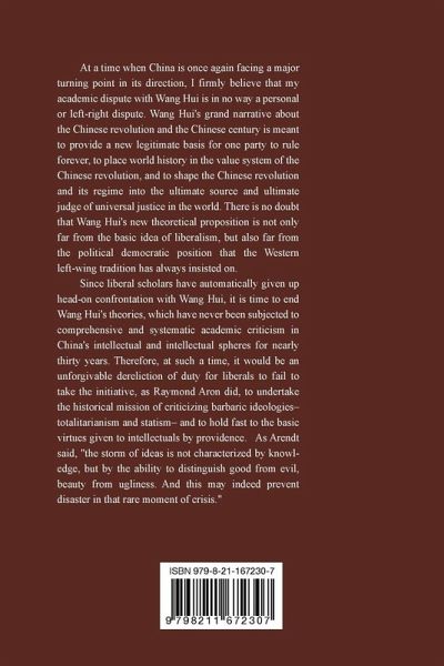 At a time when China is once again facing a major turning point in its direction, I firmly believe that my academic dispute with Wang Hui is in no way a personal or left-right dispute. Wang Hui's grand narrative about the Chinese revolution and the Chinese century is meant to provide a new legitimate basis for one party to rule forever, to place world history in the value system of the Chinese revolution, and to shape the Chinese revolution and its regime into the ultimate source and ultimate judge of universal justice in the world. There is no doubt that Wang Hui's new theoretical proposition is not only far from the basic idea of liberalism, but also far from the political democratic position that the Western left-wing tradition has always insisted on. Since liberal scholars have automatically given up head-on confrontation with Wang Hui, it is time to end Wang Hui's theories, which have never been subjected to comprehensive and systematic academic criticism in China's intellectual and intellectual spheres for nearly thirty years. Therefore, at such a time, it would be an unforgivable dereliction of duty for liberals to fail to take the initiative, as Raymond Aron did, to undertake the historical mission of criticizing barbaric ideologies-totalitarianism and statism- and to hold fast to the basic virtues given to intellectuals by providence. As Arendt said, "the storm of ideas is not characterized by knowledge, but by the ability to distinguish good from evil, beauty from ugliness. And this may indeed prevent disaster in that rare moment of crisis."