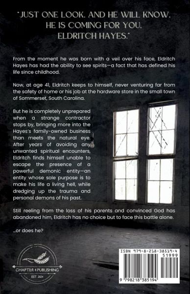 From the moment he was born with a veil over his face, Eldritch Hayes has had the ability to see spirits-a fact that has defined his life since childhood. Now, at the age of 41, Eldritch keeps to himself, never venturing far from the safety of home or his job at the hardware store in the small town of Sommerset, South Carolina. But he is completely unprepared when a strange contractor stops by, bringing more into the Hayes' family-owned business than meets the eye. After years of avoiding any unwanted spiritual encounters, Eldritch finds himself unable to escape the presence of a powerful demonic entity-an entity whose sole purpose is to make his life a living hell, while dredging up the trauma and personal demons of his past. Still reeling from the loss of his parents and convinced God has abandoned him, Eldritch has no choice but to face this battle alone. ...or does he?