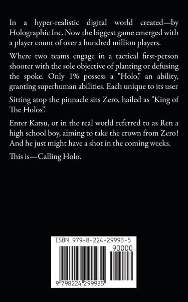 In a hyper-realistic digital world created-by Holographic Inc. Now the biggest game emerged with a player count of over a hundred million players. Where two teams engage in a tactical first-person shooter with the sole objective of planting or defusing the spoke. Only 1% possess a "Holo," an ability, granting superhuman abilities. Each unique to its user Sitting atop the pinnacle sits Zero, hailed as "King of The Holos". Enter Katsu, or in the real world referred to as Ren a high school boy, aiming to take the crown from Zero! And he just might have a shot in the coming weeks. This is-Calling Holo.