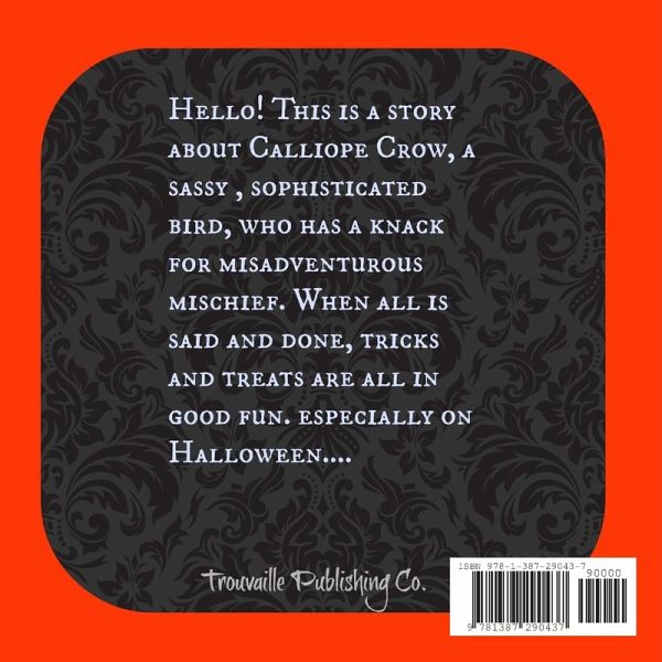 This is the story of Calliope Crow, a sassy, sophisticated crow with a knack for misadventures and mischief. It all begins on one Halloween evening with a (possible) misunderstanding, that inspires Calliope to travel into the nearest town and play tricks on its unsuspecting and Halloween enthused inhabitants.But as Calliope learns, It's all in good fun, especially on Halloween...