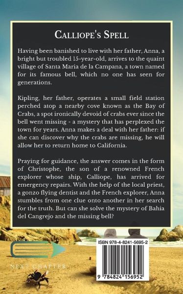 Having been banished to live with her father, Anna, a bright but troubled 15-year-old, arrives to the quaint village of Santa Maria de la Campana, a town named for its famous bell, which no one has seen for generations. Kipling, her father, operates a small field station perched atop a nearby cove known as the Bay of Crabs, a spot ironically devoid of crabs ever since the bell went missing - a mystery that has perplexed the town for years. Anna makes a deal with her father: if she can discover why the crabs are missing, he will allow her to return home to California. Praying for guidance, the answer comes in the form of Christophe, the son of a renowned French explorer whose ship, Calliope, has arrived for emergency repairs. With the help of the local priest, a gonzo flying dentist and the French explorer, Anna stumbles from one clue onto another in her search for the truth. But can she solve the mystery of Bahia del Cangrejo and the missing bell?