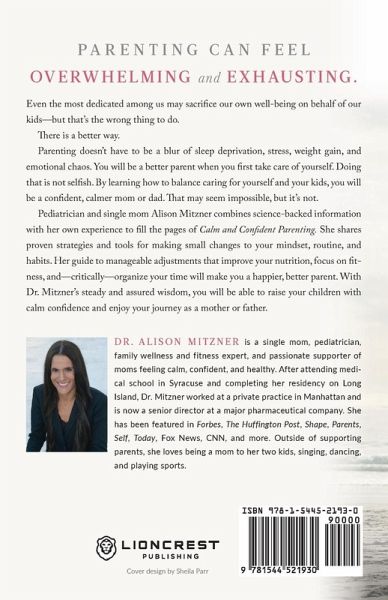 Parenting can feel overwhelming and exhausting. Even the most dedicated among us may sacrifice our own well-being on behalf of our kids-but that's the wrong thing to do. There is a better way. Parenting doesn't have to be a blur of sleep deprivation, stress, weight gain, and emotional chaos. You will be a better parent when you first take care of yourself. Doing that is not selfish. By learning how to balance caring for yourself and your kids, you will be a confident, calmer mom or dad. That may seem impossible, but it's not. ¿ Pediatrician and single mom Alison Mitzner combines science-backed information with her own experience to fill the pages of Calm and Confident Parenting. She shares proven strategies and tools for making small changes to your mindset, routine, and habits. Her guide to manageable adjustments that improve your nutrition, focus on fitness, and-critically-organize your time will make you a happier, better parent. With Dr. Mitzner's steady and assured wisdom, you will be able to raise your children with calm confidence and enjoy your journey as a mother or father.