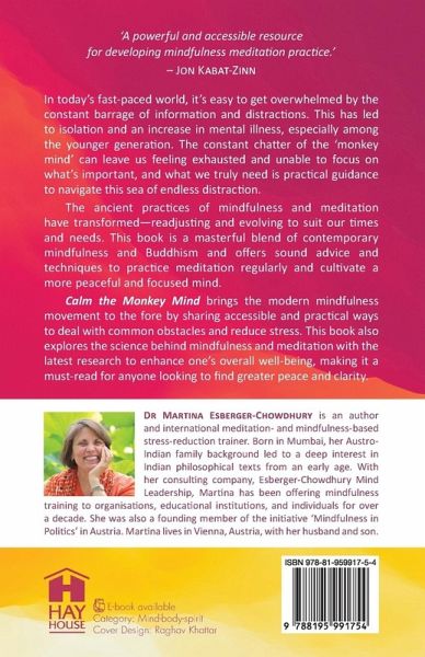 'A powerful and accessible resource for developing mindfulness meditation practice.' - Jon Kabat-Zinn In today's fast-paced world, it's easy to get overwhelmed by the constant barrage of information and distractions. This has led to isolation and an increase in mental illness, especially among the younger generation. The constant chatter of the 'monkey mind' can leave us feeling exhausted and unable to focus on what's important, and what we truly need is practical guidance to navigate this sea of endless distraction. The ancient practices of mindfulness and meditation have transformed-readjusting and evolving to suit our times and needs. This book is a masterful blend of contemporary mindfulness and Buddhism and offers sound advice and techniques to practice meditation regularly and cultivate a more peaceful and focused mind. Calm the Monkey Mind brings the modern mindfulness movement to the fore by sharing accessible and practical ways to deal with common obstacles and reduce stress. This book also explores the science behind mindfulness and meditation with the latest research to enhance one's overall well-being, making it a must-read for anyone looking to find greater peace and clarity.