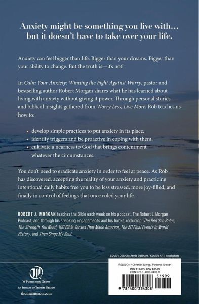 Anxiety isnâ t something you should be ashamed of or a feeling that should be allowed to take over your life. Using biblical insight and proven practices that work, Robert Morgan will teach you how to deal with your anxiety in a way that allows you to be joyful, peaceful, less stressed out, and deepen your faith.