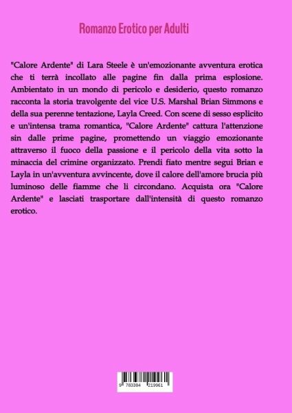 "Calore Ardente" di Lara Steele è un'emozionante avventura erotica che ti terrà incollato alle pagine fin dalla prima esplosione. Ambientato in un mondo di pericolo e desiderio, questo romanzo racconta la storia travolgente del vice U.S. Marshal Brian Simmons e della sua perenne tentazione, Layla Creed. Con scene di sesso esplicito e un'intensa trama romantica, "Calore Ardente" cattura l'attenzione sin dalle prime pagine, promettendo un viaggio emozionante attraverso il fuoco della passione e il pericolo della vita sotto la minaccia del crimine organizzato. Prendi fiato mentre segui Brian e Layla in un'avventura avvincente, dove il calore dell'amore brucia più luminoso delle fiamme che li circondano. Acquista ora "Calore Ardente" e lasciati trasportare dall'intensità di questo romanzo erotico.