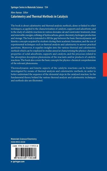 The book is about calorimetry and thermal analysis methods, alone or linked to other techniques, as applied to the characterization of catalysts, supports and adsorbents, and to the study of catalytic reactions in various domains: air and wastewater treatment, clean and renewable energies, refining of hydrocarbons, green chemistry, hydrogen production and storage. The book is intended to fill the gap between the basic thermodynamic and kinetics concepts acquired by students during their academic formation, and the use of experimental techniques such as thermal analysis and calorimetry to answer practical questions. Moreover, it supplies insights into the various thermal and calorimetric methods which can be employed in studies aimed at characterizing the physico-chemical properties of solid adsorbents, supports and catalysts, and the processes related to the adsorption desorption phenomena of the reactants and/or products of catalytic reactions. The book also covers the basic concepts for physico-chemical comprehension of the relevant phenomena. Thermodynamic and kinetic aspects of the catalytic reactions can be fruitfully investigated by means of thermal analysis and calorimetric methods, in order to better understand the sequence of the elemental steps in the catalysed reaction. So the fundamental theory behind the various thermal analysis and calorimetric techniques and methods also are illustrated.